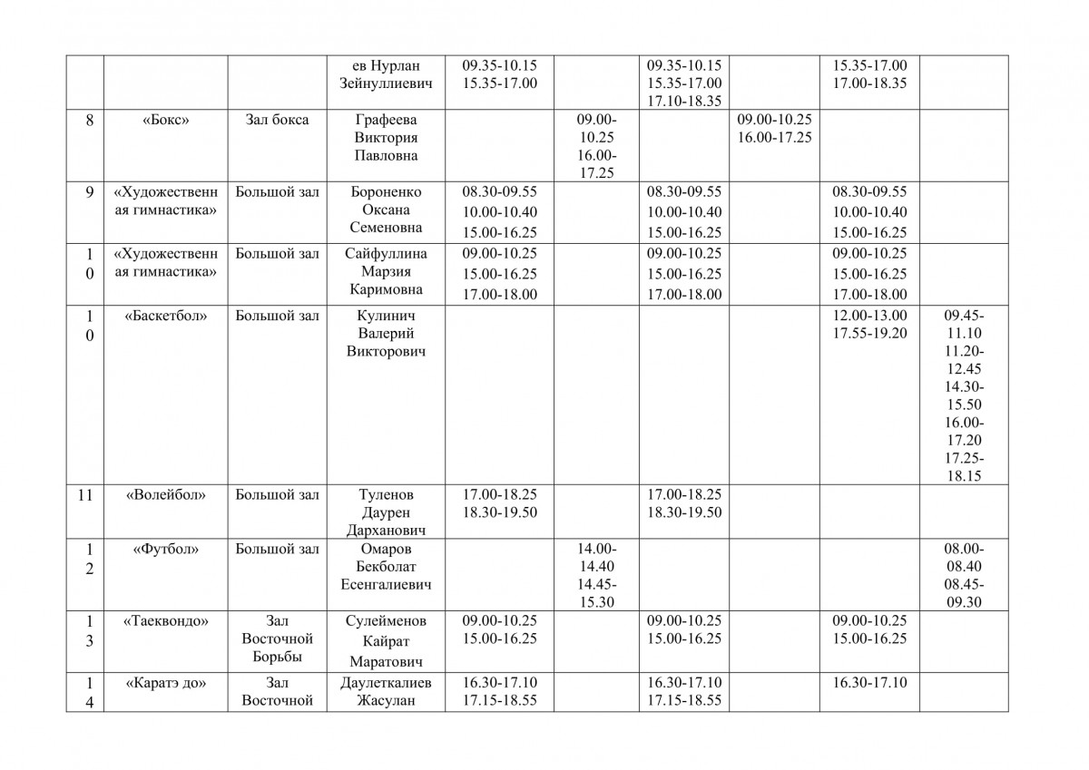 Расписание